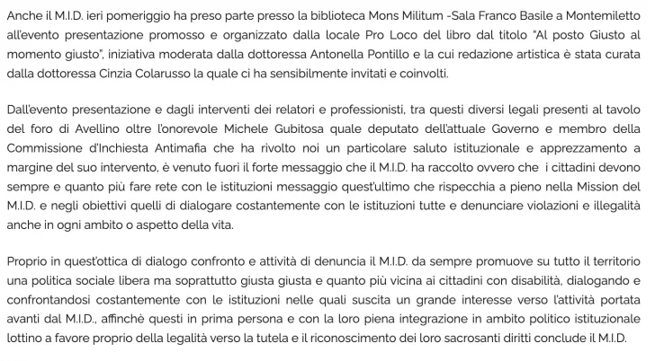 Condivido con voi l’articolo pubblicato su “binews.it” in merito all’evento presentazione promosso e organizzato dalla locale Pro Loco del libro dal titolo “Al posto Giusto al momento giusto”.