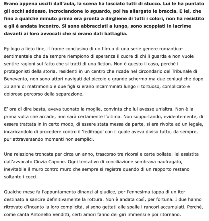 Condivido con voi l’articolo pubblicato su “XD” in merito ad una storia toccante di riconciliazione che ha visto due coniugi ritrovarsi e riabbracciarsi dopo un lungo periodo di separazione e incomprensioni.