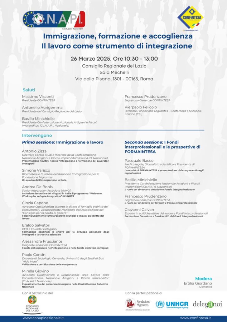 Il 26 marzo interverrò al convegno “Immigrazione, formazione e accoglienza – Il lavoro come strumento di integrazione”, presso il Consiglio Regionale del Lazio.