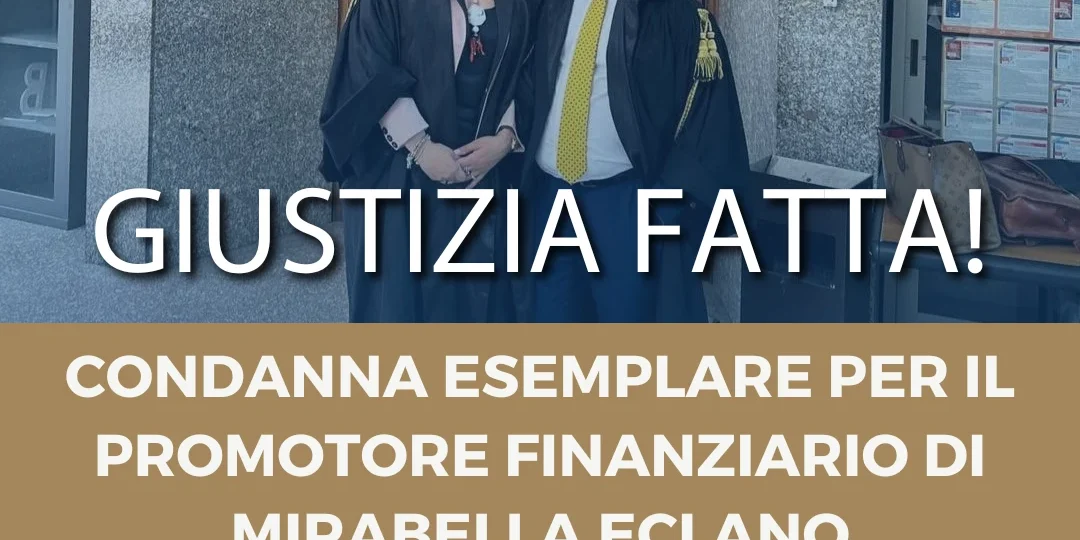 Condivido con voi l’articolo pubblicato su “TG News TV” in merito alla condanna del promotore finanziario di Mirabella Eclano accusato di truffa ai danni di numerose vittime.